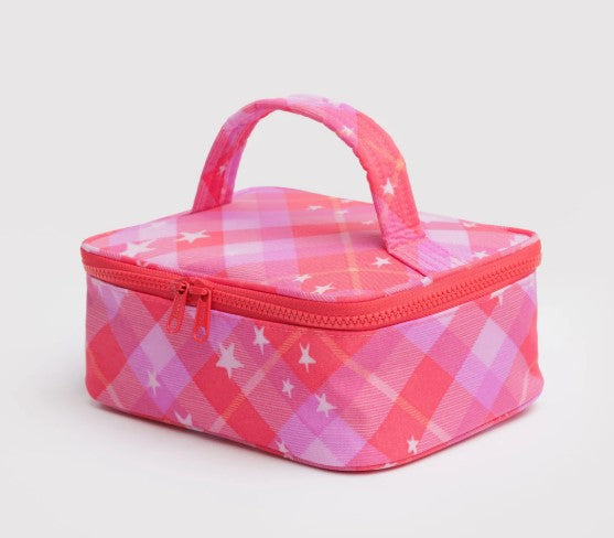 Baggu - Small Cosmetic Case Pink star Plaid