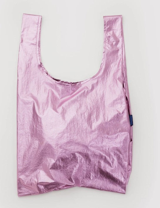 Starting with our Spring 2022 collection, all of our ripstop nylon styles are now made with 100% recycled nylon filament yarn (up from 40% recycled before). This 100% recycled nylon yarn is produced from pre-consumer waste, which saves scrap material from being landfilled — meaning every Standard Baggu is now made entirely from nylon that would otherwise go to a landfill. This also conserves petroleum resources, and reduces greenhouse gas emissions.