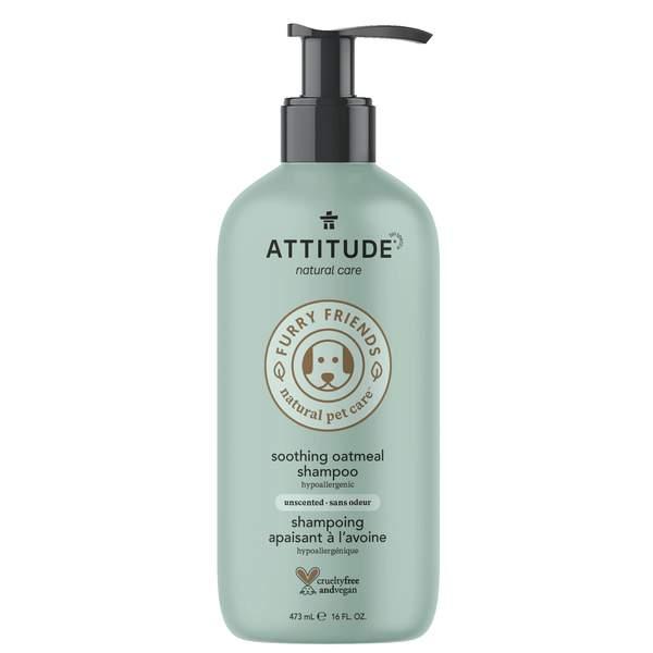 ATTITUDE Furry Friends Soothing Oatmeal Shampoo is enriched with oats. This shampoo is made with a soothing and moisturizing formula which gently cleanses and protects your furry friend's fur and skin. Pamper your pet with this mild and hypoallergenic unscented shampoo, entirely designed with natural plant and mineral based ingredients. Because we love animals as much as you do, this product is vegan and is not tested on animals like every ATTITUDE product!